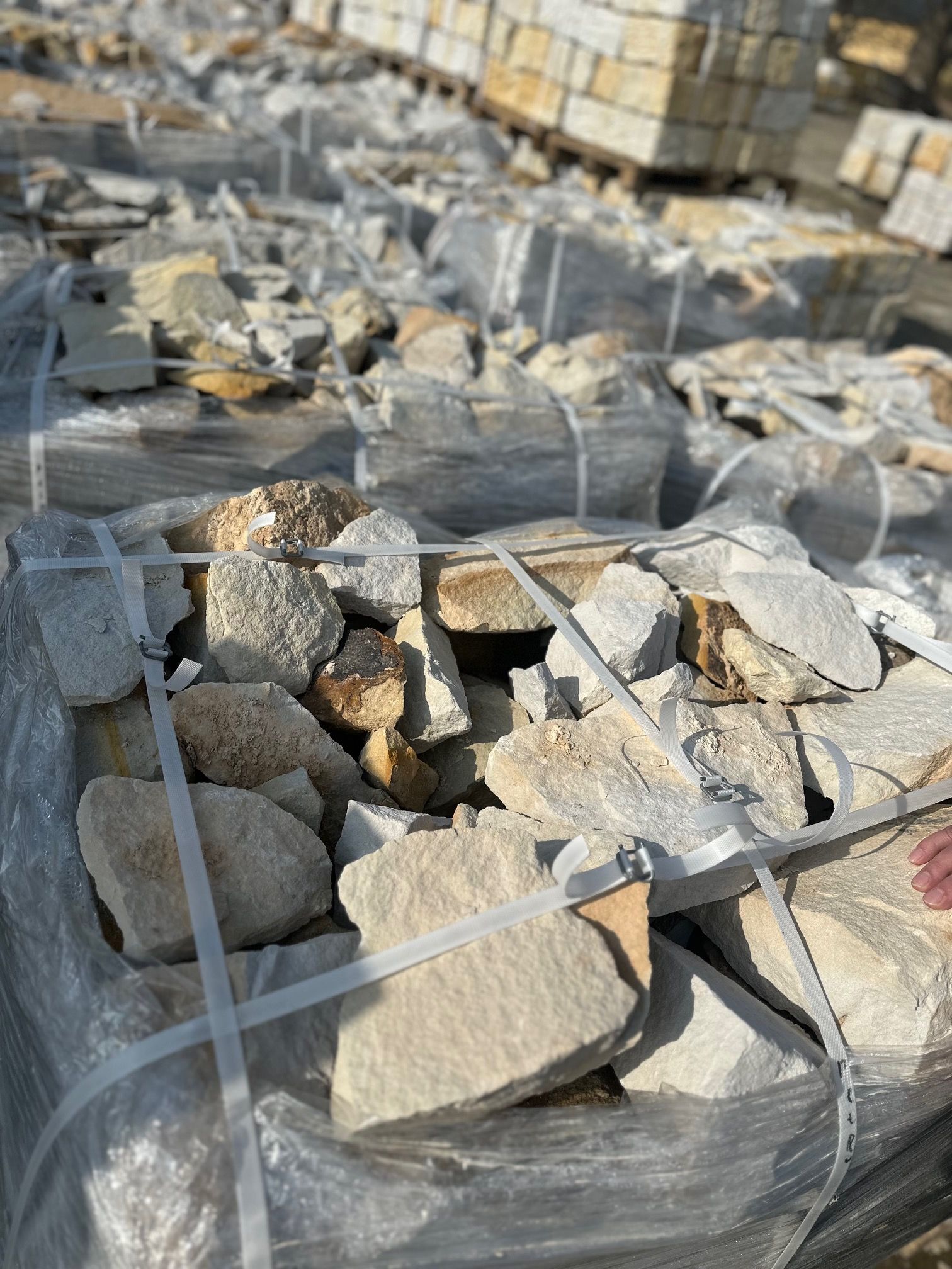Kamień ogrodowy z piaskowca w naturalnej, nieregularnej formie, gotowy do budowy murków, rabat i romantycznych ścieżek.